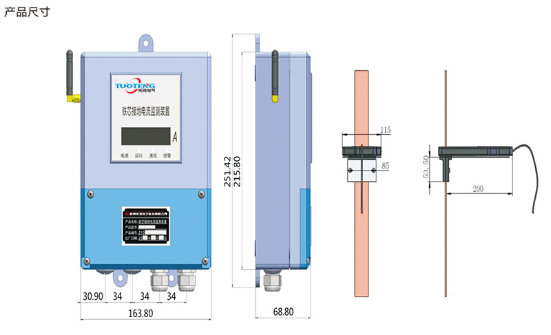 裝置本體與電流互感器采用分體設(shè)計(jì),專用的夾具使電流互感器可靈活安裝到鐵芯接地引下線上,裝置本體可根據(jù)現(xiàn)場情況靈活安裝至不同位置;