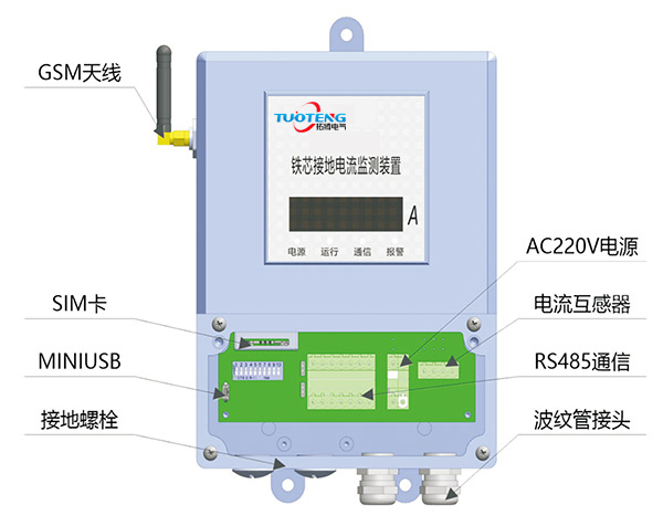 ● 采用5位數(shù)碼管本地顯示實(shí)時(shí)接地電流,具備電源、運(yùn)行、通信、報(bào)警各種狀態(tài)指示;